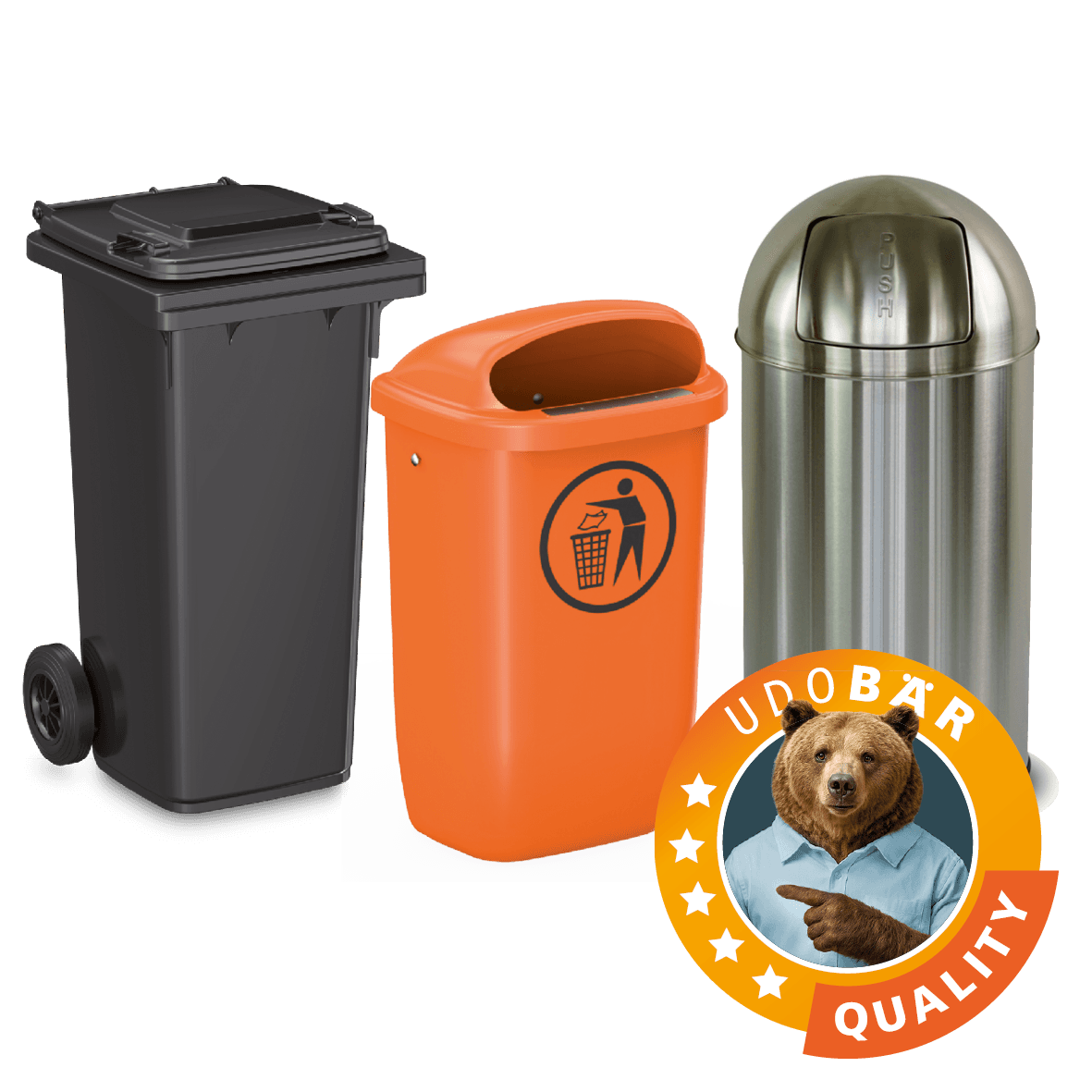 Avec les poubelles robustes UDO BÄR, vous éliminez vos déchets immédiatement – pratiques, solides et hygiéniques pour chaque lieu de travail.