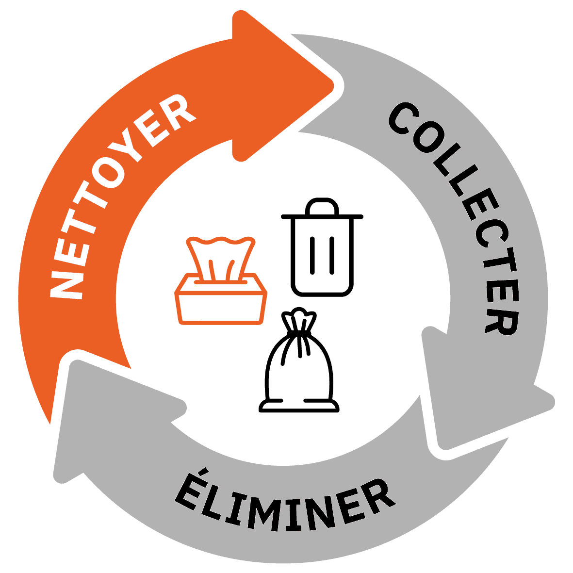 Du nettoyage à la collecte jusqu’à l’élimination, nous vous proposons des produits bien conçus qui s’emboîtent parfaitement et forment un cycle fermé. Ainsi, nous veillons à ce que vous disposiez, à chaque étape du processus, de la solution adaptée à vos côtés – efficace, fiable et d’une seule source.